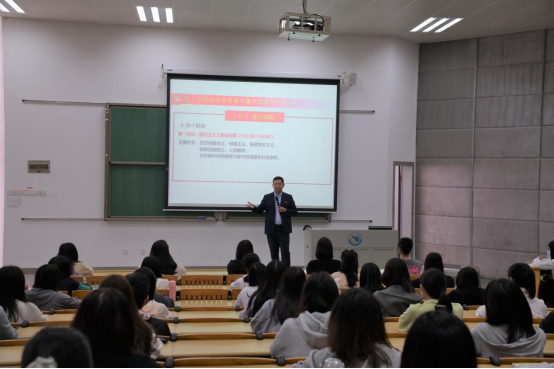 3月3日上午,校党委书记朱益民在教三205,为80多名2021级商务英语学生讲授“开学第一课”。“开学第一课”以“聚焦十九届六中全会激发奋进新征程”为题展开。