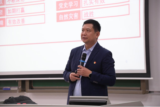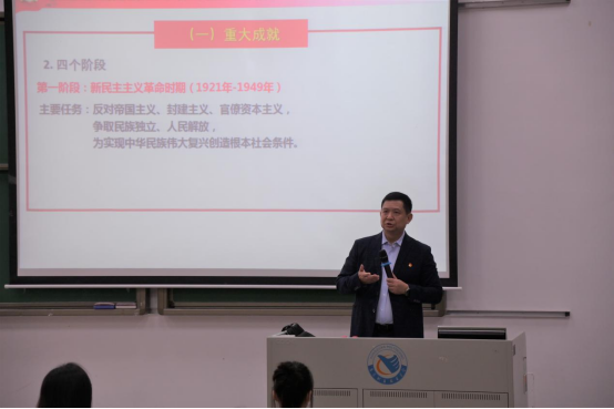 课上,通过结合重大历史事件、重要时间节点和重要人物,朱书记向同学们讲述了党的百年奋斗重大成就和历史经验,阐述了中国共产党百年奋斗的辉煌成就和经验启示,引导他们“从党的百年奋斗中看清楚我们为什么能够成功、弄明白未来我们在怎样才能继续成功”。朱书记指出,在中国共产党百年华诞的重要时刻,在“两个一百年”奋斗目标历史交汇关键节点上,党的十九届六中全会胜利召开,审议通过了《中共中央关于党的百年奋斗重大成就和历史经验的决议》和《关于召开党的第二十次全国代表大会的决议》,全面总结党的百年奋斗重大成就和历史经验,对于推动全党进一步统一思想、统一意志、统一行动,更加坚定自觉地践行初心使命,在新时代更好坚持和发展中国特色社会主义,具有重大现实意义和深远历史意义。