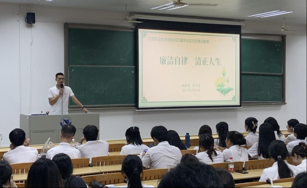 为深入学习贯彻党的二十大精神,推动校园廉洁教育常态化、长效化,切实增强毕业生党员的廉洁自律意识,6月26日,校纪检室联合学生处举办“廉洁自律 清正人生”主题廉洁教育专题党课,2025届毕业生党员参加学习。