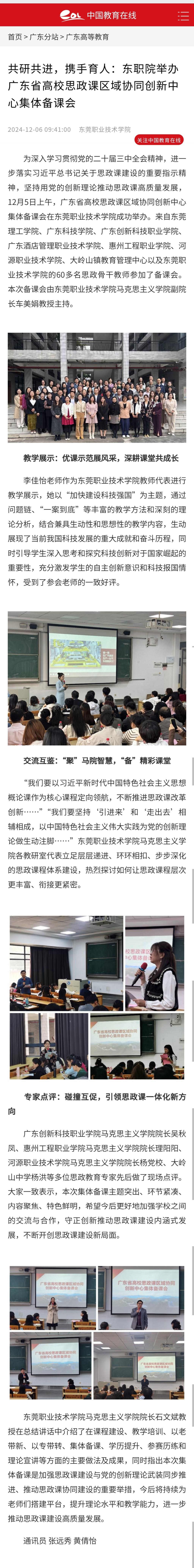 【中国教育在线】共研共进,携手育人:东职院举办广东省高校思政课区域协同创新中心集体备课会