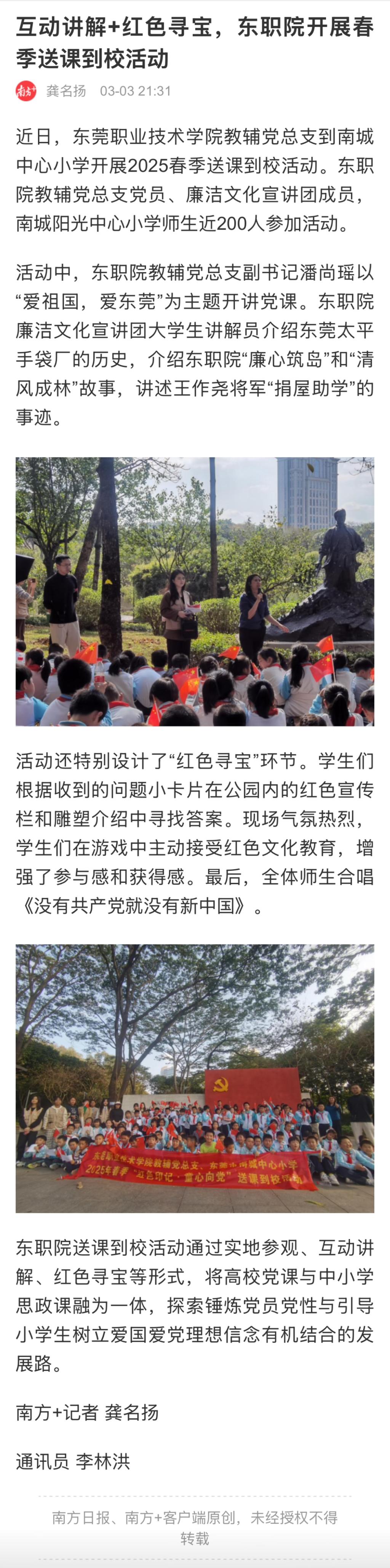 【南方+】互动讲解+红色寻宝,东职院开展春季送课到校活动